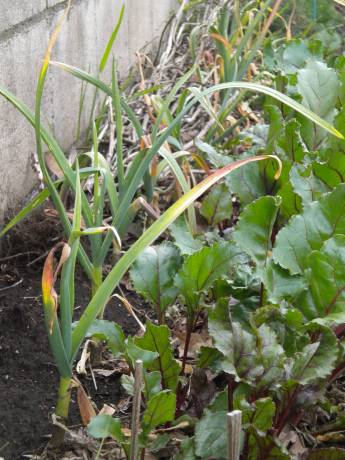 Now, it's a waiting game to see what will happen. Some suggest waiting until the bottom three leaves yellow and die off before digging the garlic. I've decided to leave those that look particularly healthy and happy - thick stems with green leaves - and dig those that look less robust - thin stems with sad leaves. Eventually, I'll find out what I should expect and when to harvest.