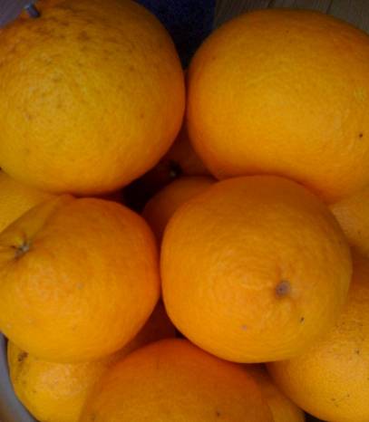 A pot of marmalade bubbles away on the stove filling the apartment with a bright tangy smell this morning. We spent Saturday helping prepare this year's eggplant field for planting later this month, and one of our take-home prizes was a big bag of mikan. (As was a lovely bamboo shoot, a.k.a. takenoko.) Big, bright, and round these are some of the last ones for the year. They made a lovely marmalade last year that we savored on fresh bread and in cups of tea.Growing just behind the farmhouse the mikan is one of an assortment of trees, shrubs, and plants that could still feed an extended family year round. The farmstead inventory includes (but is probably not limited to) two kinds of kaki (persimmon), a kinkan bush (tiny, tiny edible orange eaten whole), yuzu and ume (plum) trees, at least one green tea bush with ginger (myoga) at its feet, a healthy stand of bamboo, a few wild vegetables such as fukinoto and warabi, and green and red shiso sprouting just about everywhere imaginable. Chestnut (kuri) and gingko orchards round the edges of the fields, and provide a little something extra for the larder.