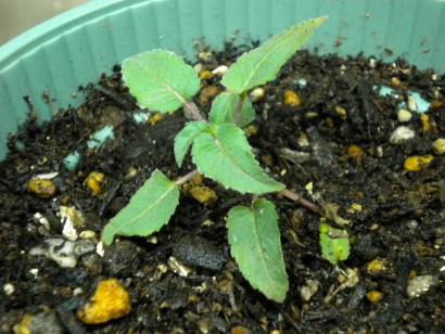 Yesterday, as I was getting ready to leave their house, he called to talk to his wife. She bustled about, and I began gathering my things to head home. Suddenly, she appeared at my side with a small pot and asked me if it was bergamont. It looked right, but I broke off a wee bit of leaf to do a taste test. Bergamont, indeed! The two little side shoots were mine to take home if I wanted.