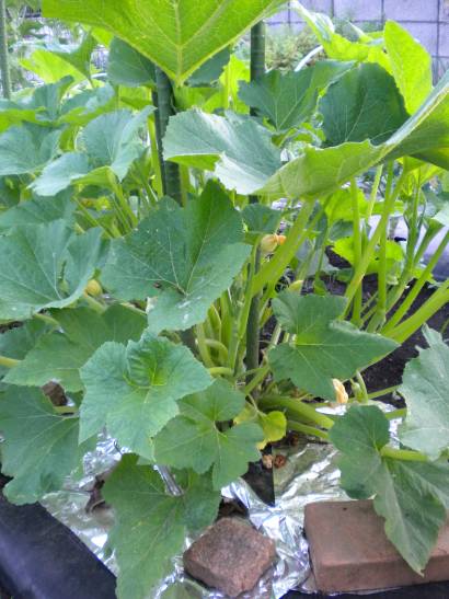 The aphid population on my zucchini seems to have dropped off a bit. The double-whammy (aluminum foil and Neem) seems to be helping, although I'll be keeping a close watch on the situation as the remaining harvest time goes along. (My tomatoes, some very precious Brandywines and Black Zebras, are also showing signs of stress from an invasion so I'm mildly concerned about them, too.)