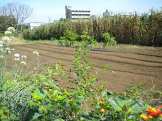 This morning Takashi-san plowed in the compost, seaweed, wood ash, eggshells, chicken manure, and bacteria spread yesterday to boost the garden soil. Next week I hope to do a bit of planting, and work on preparing the garlic bed.