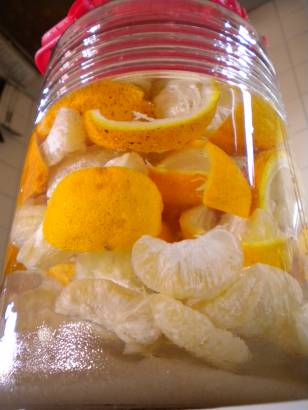 Speaking of leftovers, Kyoto Foodie (KF) - source of the recipe here - turned the leftover peels and bits into marmalade, which I'm going to give a go, too. A neighbor down the hall gave me the dregs from her batch last year, and I used them in various dishes in order to empty the container. If I am the blessed recipient again, I'll add her fixings to mine for what should be something scrumptious. Or at least, a good gift. (KF also candied his peel, which I like the sound of despite having no idea how to do it.)