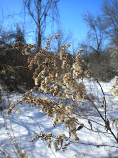 Goldenrod is another favorite of mine both for it's cheerful yellow fall flowers and it's fuzzy winter seed heads. Providing a much needed snack for birds and mice that linger through these chilly months it (along with the bergamont seed heads pictured with this post) it gives a bit of structure and texture to the winter landscape.