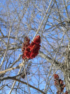 Sumac is another graceful beauty that I have come to love. It's bright red pods are rumored to make a mean lemonade, and the color they afford the winter landscape is refreshing.