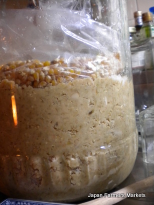 I'll never forget opening that bag of koji. The smell that emerged was yeasty and wonderful, putting me in mind of my bread-making days in America or peeking at my mother's coffeecake dough as it magically rose under a dishtowel in a corner of the kitchen. Pure joy and a connection with so many parts of the past and this new culture is what I felt right then. Even if my miso fails, this moment alone was totally worth it.
