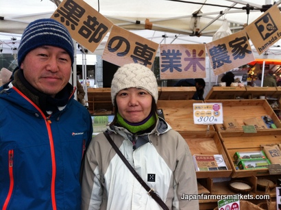 | Organic rice growers at the UN University Market! (Taken in late fall, hence the coats and hats. I'm ignoring summer's approach.) |