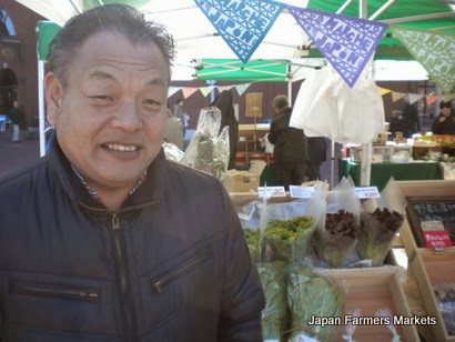 | Chillin' (quite literally) with an organic farmer at the Ebisu Farmers Market. |