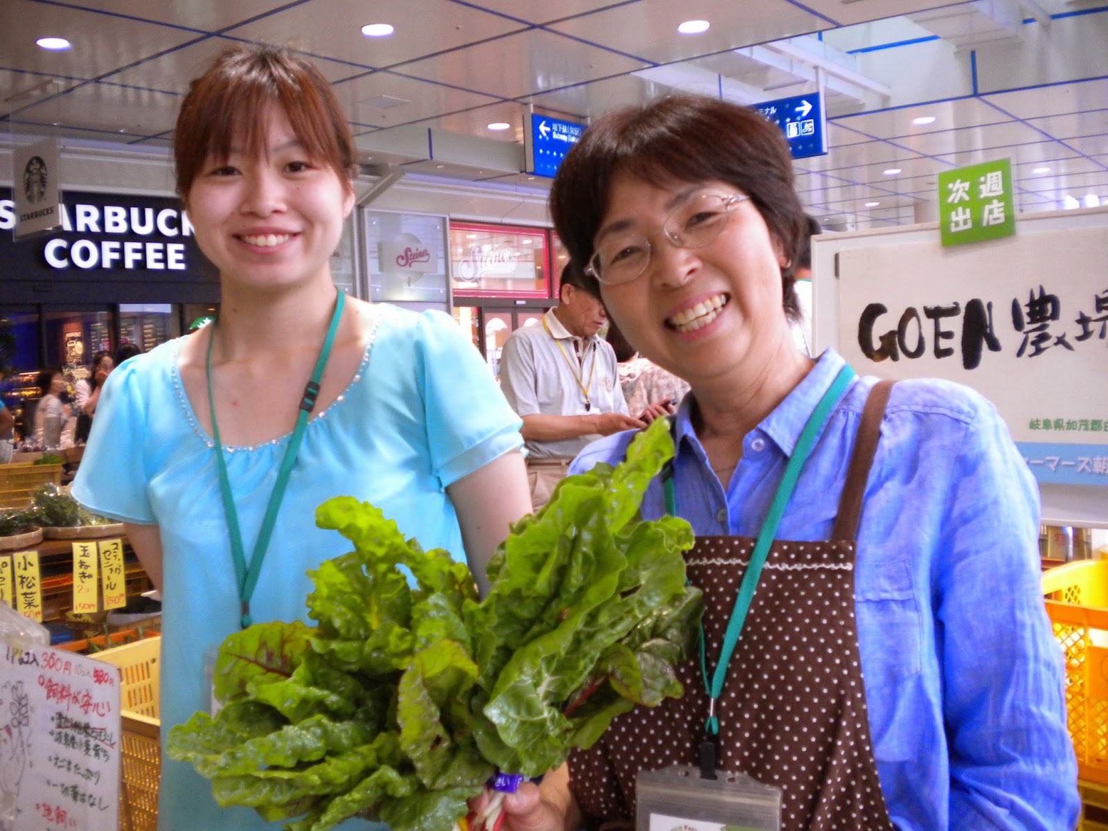 | Shirakawago organic farmers at the Nagoya Organic Market. Don't miss their awesome Swiss Chard! |