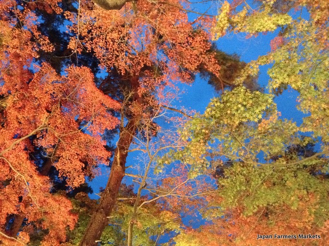 | Illuminated maple leaves in Chichibu. |