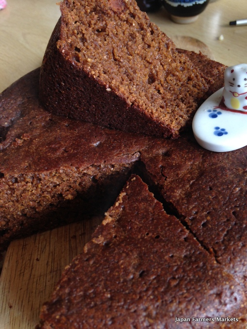Lightly grease the rice cooker bowl and pour in the batter. Bake for a full cycle plus one more of the half-hearted ones the machine gives at this point before flipping over to bake for another half-hearted one. Turn out on a cutting board to cool or just cut into it straightaway like we did for a warm slice of joy.