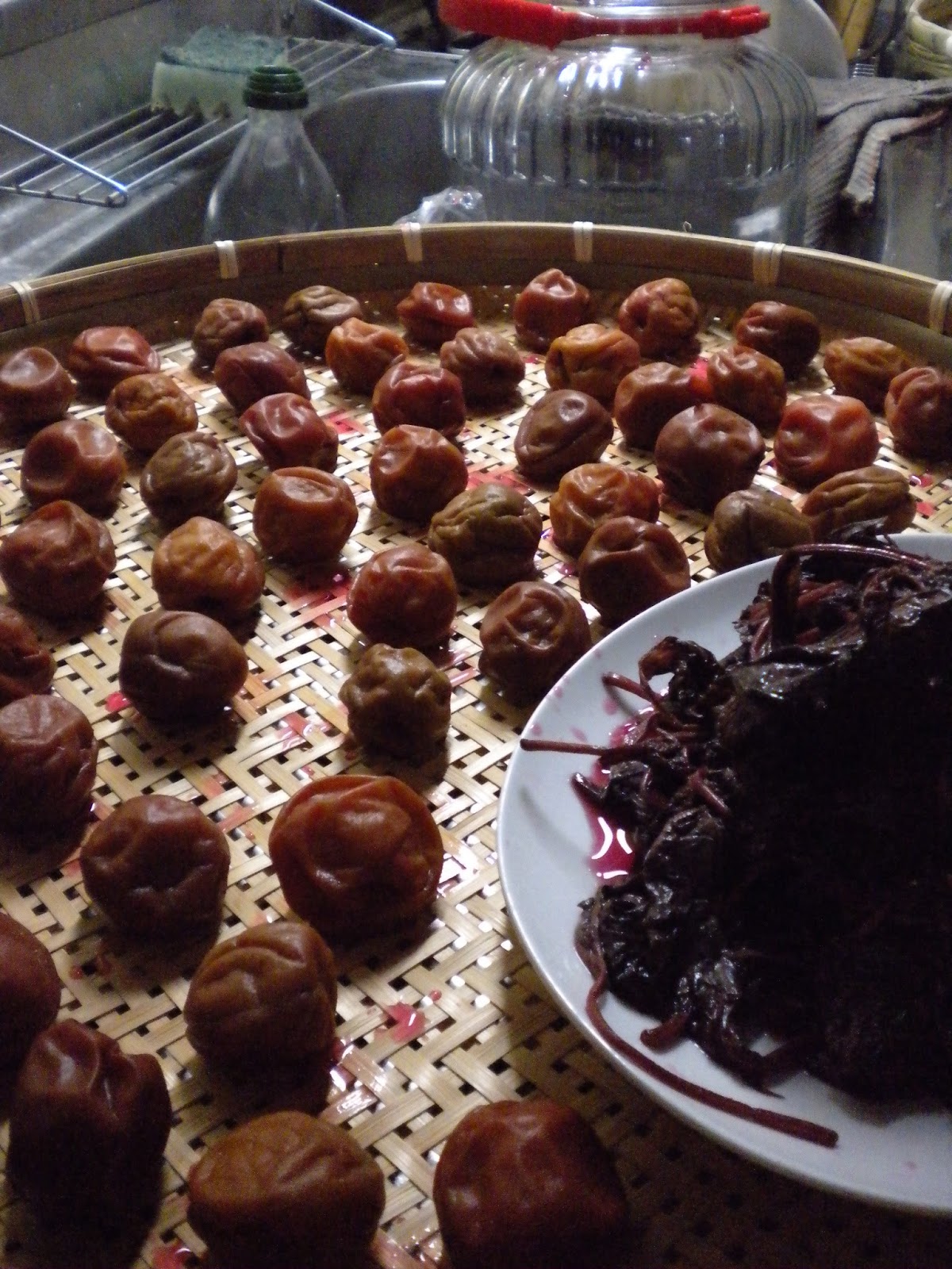 | Umeboshi, one of the classic tsukemono, ready to dry. |