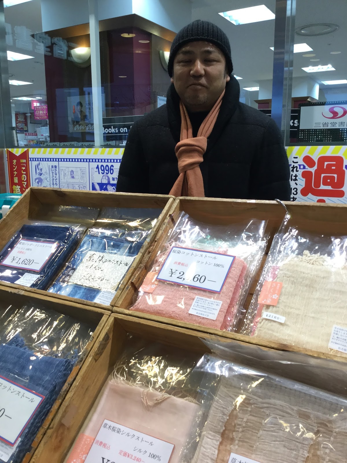 Sakosenshokukoge in Ibaraki who was on hand with some of the exquisite textiles from the weaver and dyer he works with there. The scarves, stoles, and other items were stunning pieces. Using mostly natural dyes such as indigo and sakura (cherry) wood, Akira Sako, the workshop owner then works his magic on the loom to create unique designs for these smaller items as well as kimono. Sako moved from Shinjuku to Senshokumura, a village famous for dyeing, and has been perfecting his craft for more than fifty years.