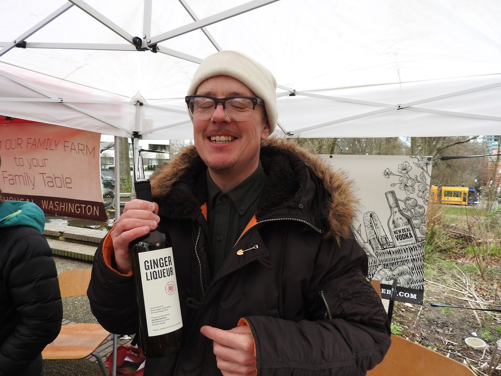 New Deal Distillery. A little overwhelmed at this point and not sure if I had another lap in me or not, this was a great place to pause and chat. Ian, a New Deal Distillery staff member and enthusiast, stood cheerfully bundled against the cold behind an array of bottles. Being from Wisconsin, I opted for the pear brandy. "We got the local fruit and just let the magic happen," Ian said as I sipped the surprisingly clear liquid. Smooth and flavorful, it went down easy, but it was the Ginger Liqueur that stole the show for us and the small crowd of other visitors that soon gathered around to sip and assess. Sweet, hot, and pleasantly punchy, we all were in love with this one.