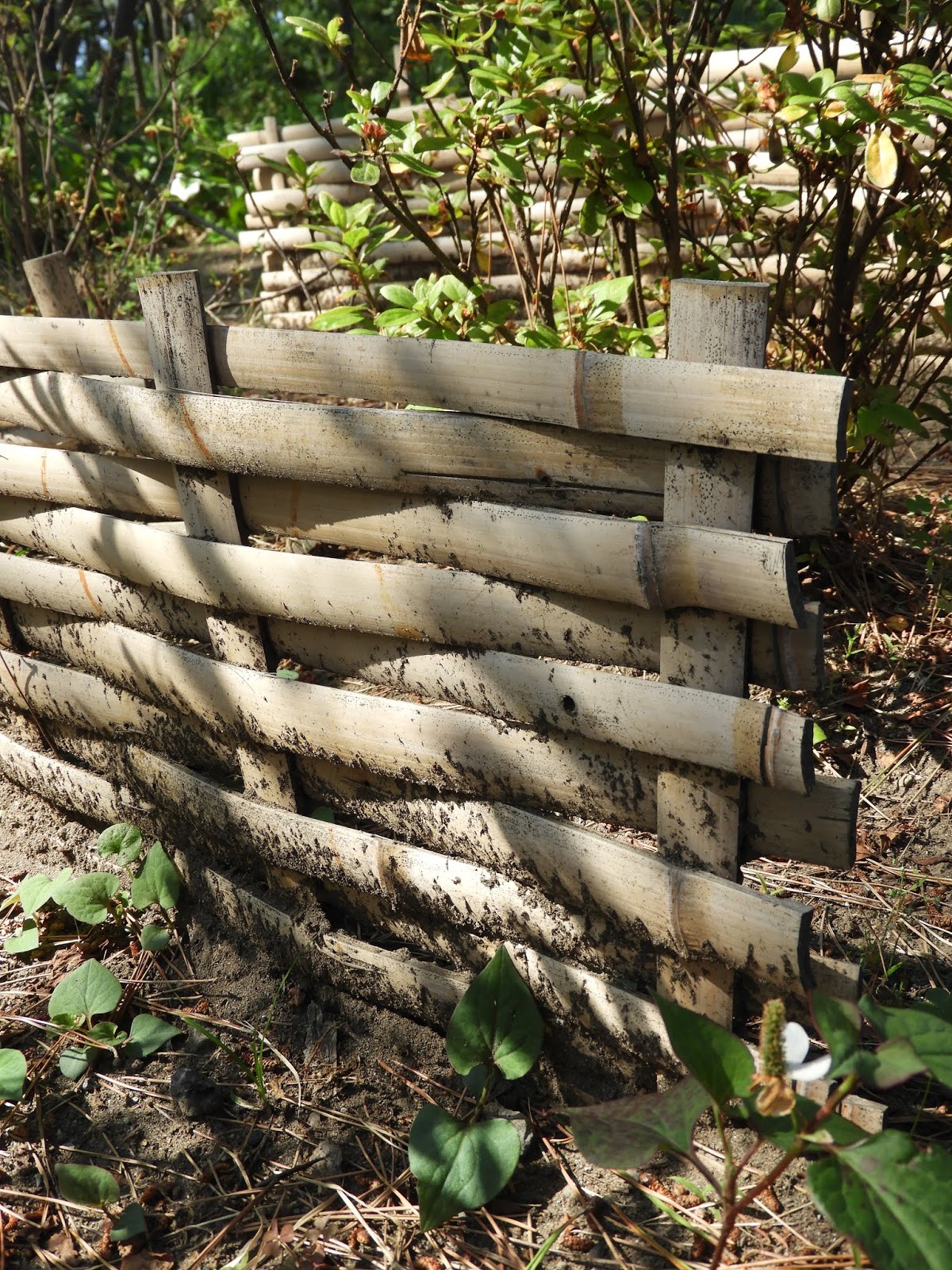 A recent trip to the former summer villa of the Japanese Imperial Family found me wandering the garden, and while there I stumbled on this nifty little erosion protection fence. The villa is quite close to the seashore in Izu, protected from ocean winds and weather by the surrounding pines. However, these little fences offered a little extra protection for the lower, perhaps more fragile flowering shrubs and plants that lined the walk.
