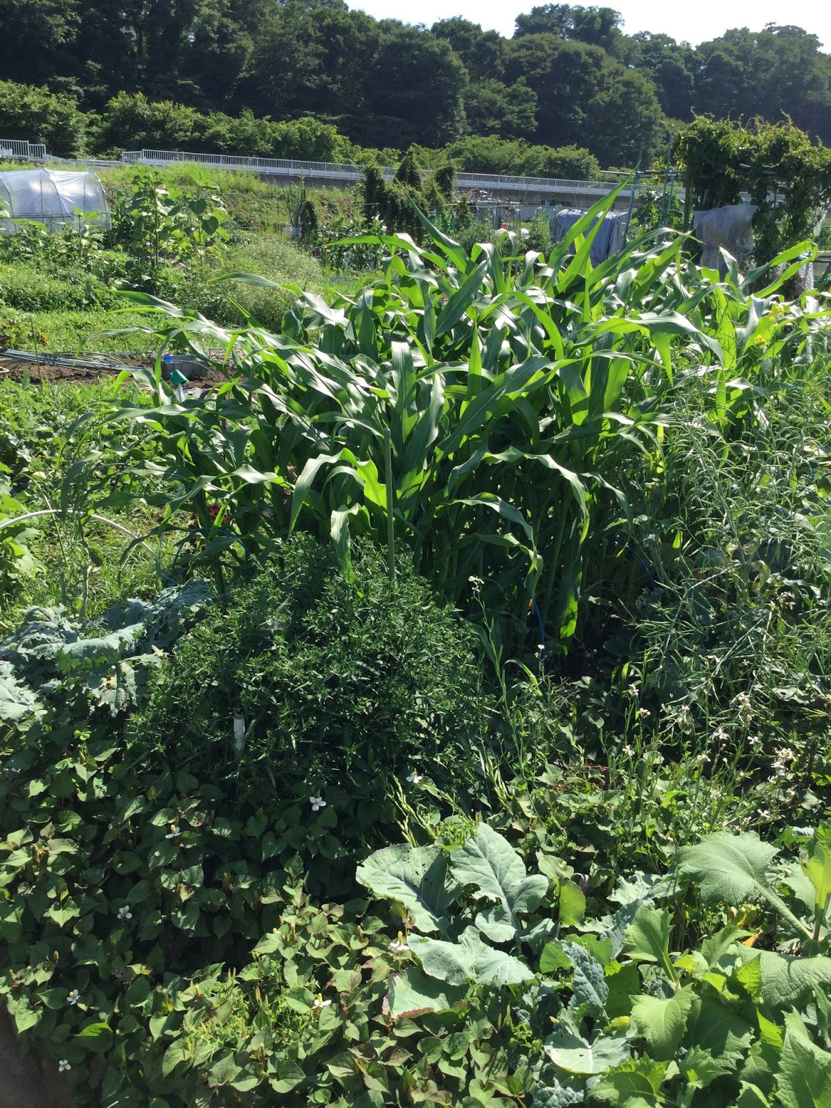 The popcorn plants stand shoulder high now and have yet to tassle. I always forget just how tall these plants get. I'm always impressed at the strength of their roots and how the shape themselves to the wind. Granted, the unseasonal typhoons that are now the norm are a challenge, but I remain hopeful.