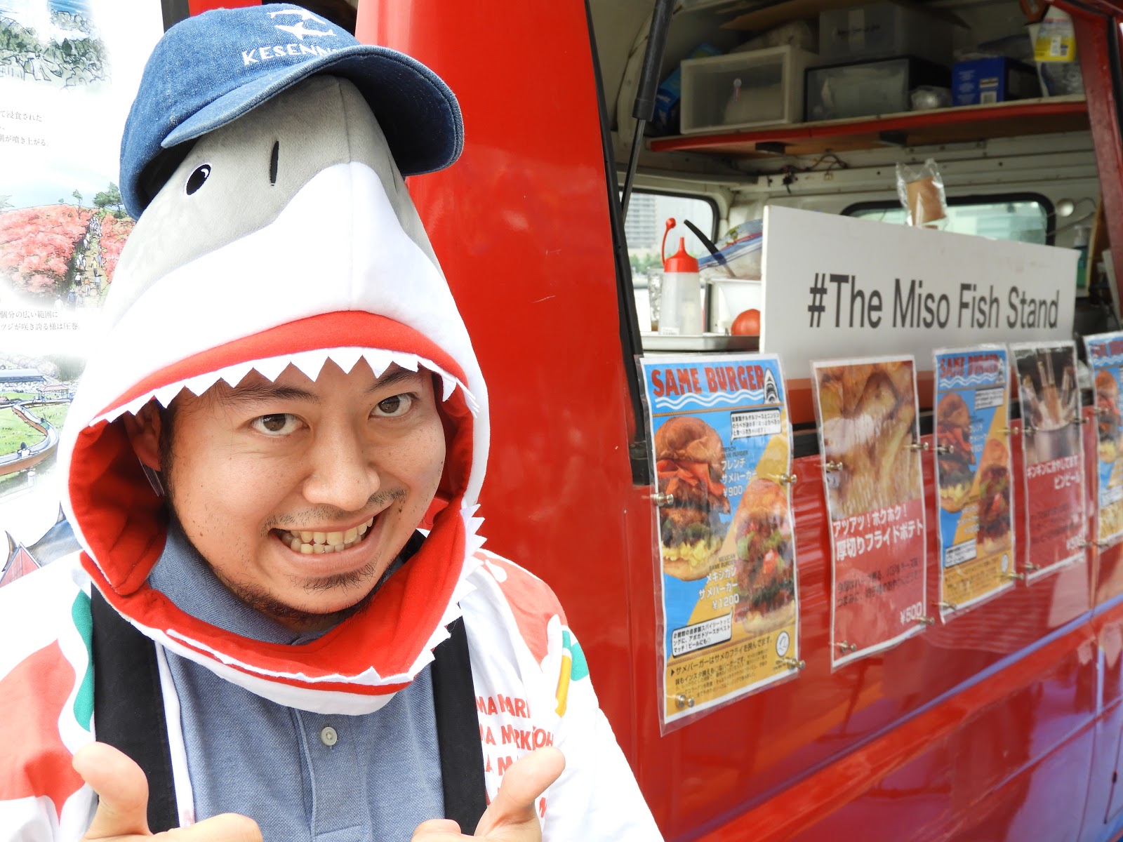 | Takaumi Takase, founder of The Miso Fish Stand, at the Osonbashi Marche. |