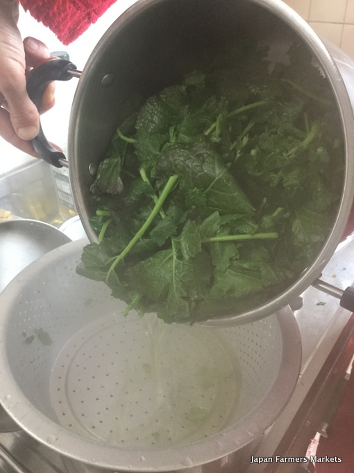 5. Plunge the boiled and drained greens into cold water to stop the cooking process.