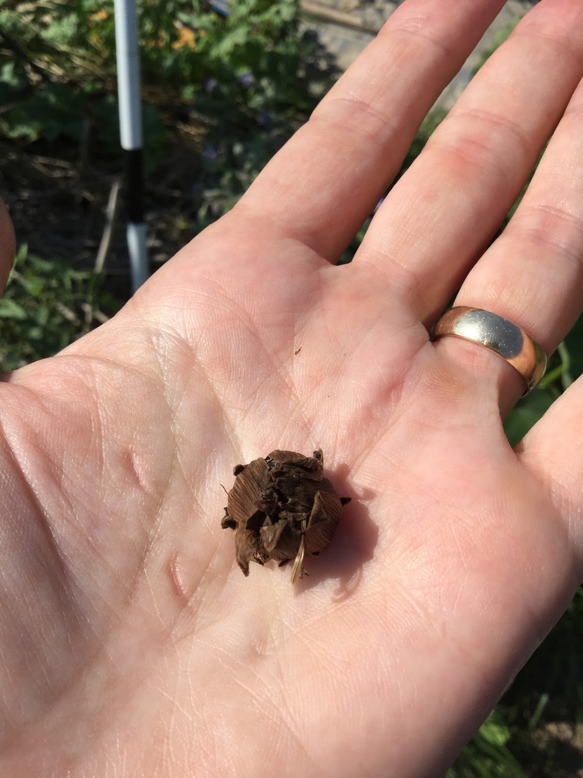 | Coreopsis seed head at the ready. |