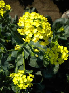 And what magnificent blooms they are, I must say! Their scent is utterly extraordinary - reminiscent of lilacs but more subtle- and their bright yellow is charming. The farmer's shake their heads at me and passersby do a bit more than hint that these greens are too big to eat, but I still keep them. (The leaves and flowers are quite edible, actually, although the lower leaves aren't overly attractive.) Despite the pressure to remove them, what's got me really dragging my garden gloves is the sight of so many bees and insects working amongst them. I've never seen so many in my garden, and I'm delighted. I'm even considering planting more of these vegetables elsewhere and letting them go to seed to keep those pollinators happy. And to enjoy a few more small bites of some of our favorite greens in salads, too.